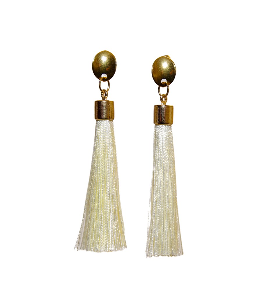 Pendientes con borla de seda y detalles metálicos dorados