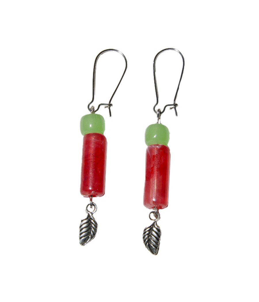 Pendientes con cuentas acrílicas imitación piedra en forma de cilindro.