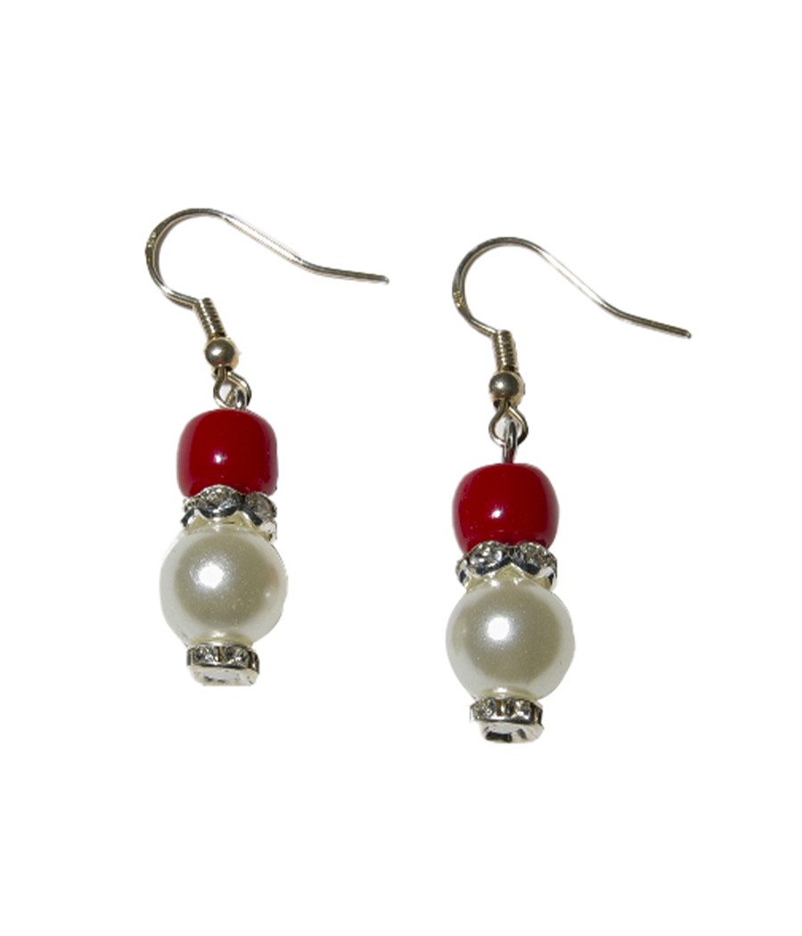 Pendientes colgantes con perla de imitación de ABS, cuenta de cristal en color rojo.